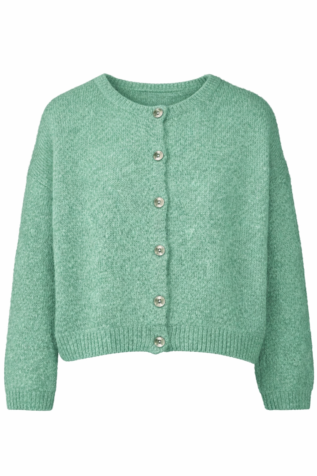 Lichtgroen Vest 'For Her' van So Beau by Beauregard, in de kleur Vert Clair. Vest met een ronde hals, lange mouwen en knoopjes om het vest eventueel te sluiten, om het als trui te dragen. Vest is verkrijgbaar in verschillende kleuren.