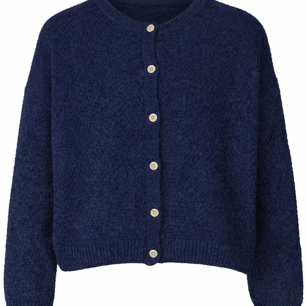Donkerblauw Vest 'For Her' van So Beau by Beauregard in de kleur Marine. Vest met een ronde hals, lange mouwen en knoopjes om het vest eventueel te sluiten, om het als trui te dragen. Vest is verkrijgbaar in verschillende kleuren.