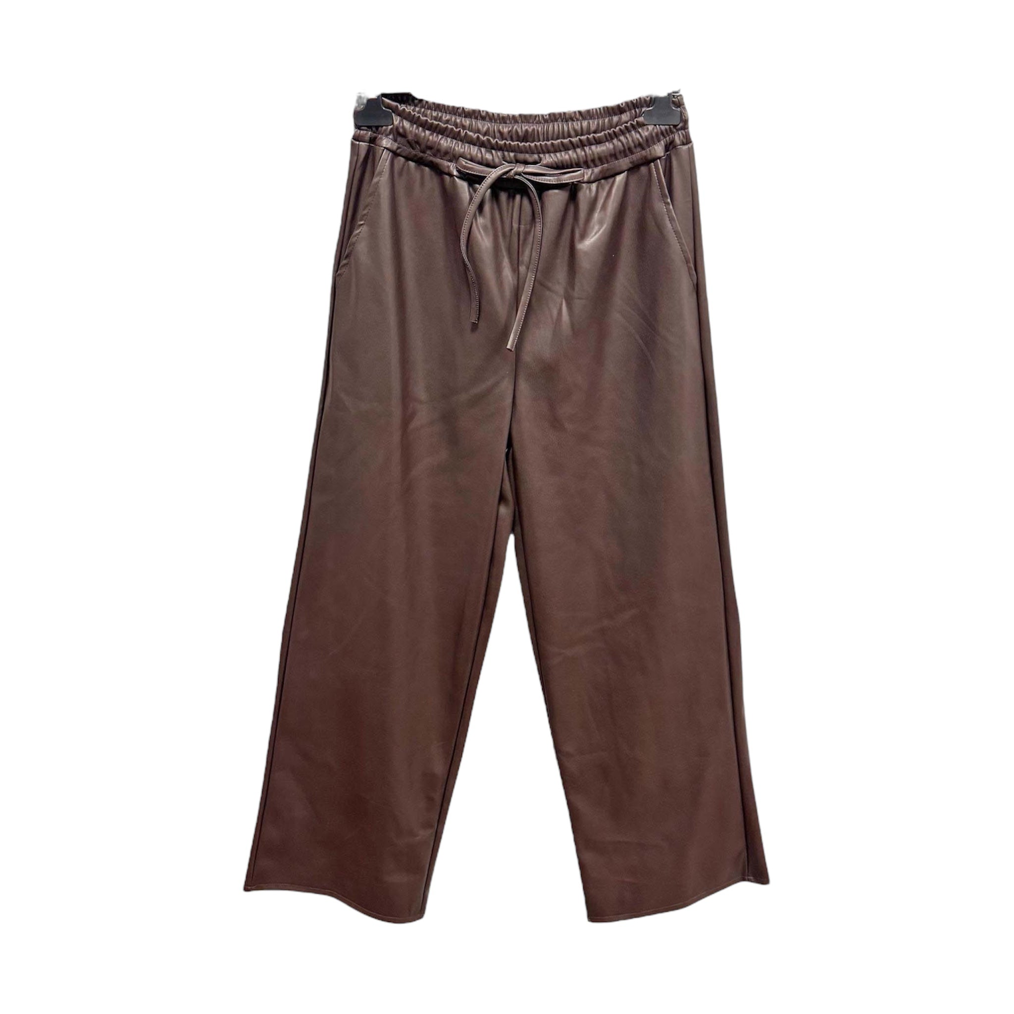 Trendy Imitatieleren Broek met Insteekzakken, Strik en Elastische taille. Geef je outfit een stijlvolle upgrade met deze bruine PU wide leg broek!