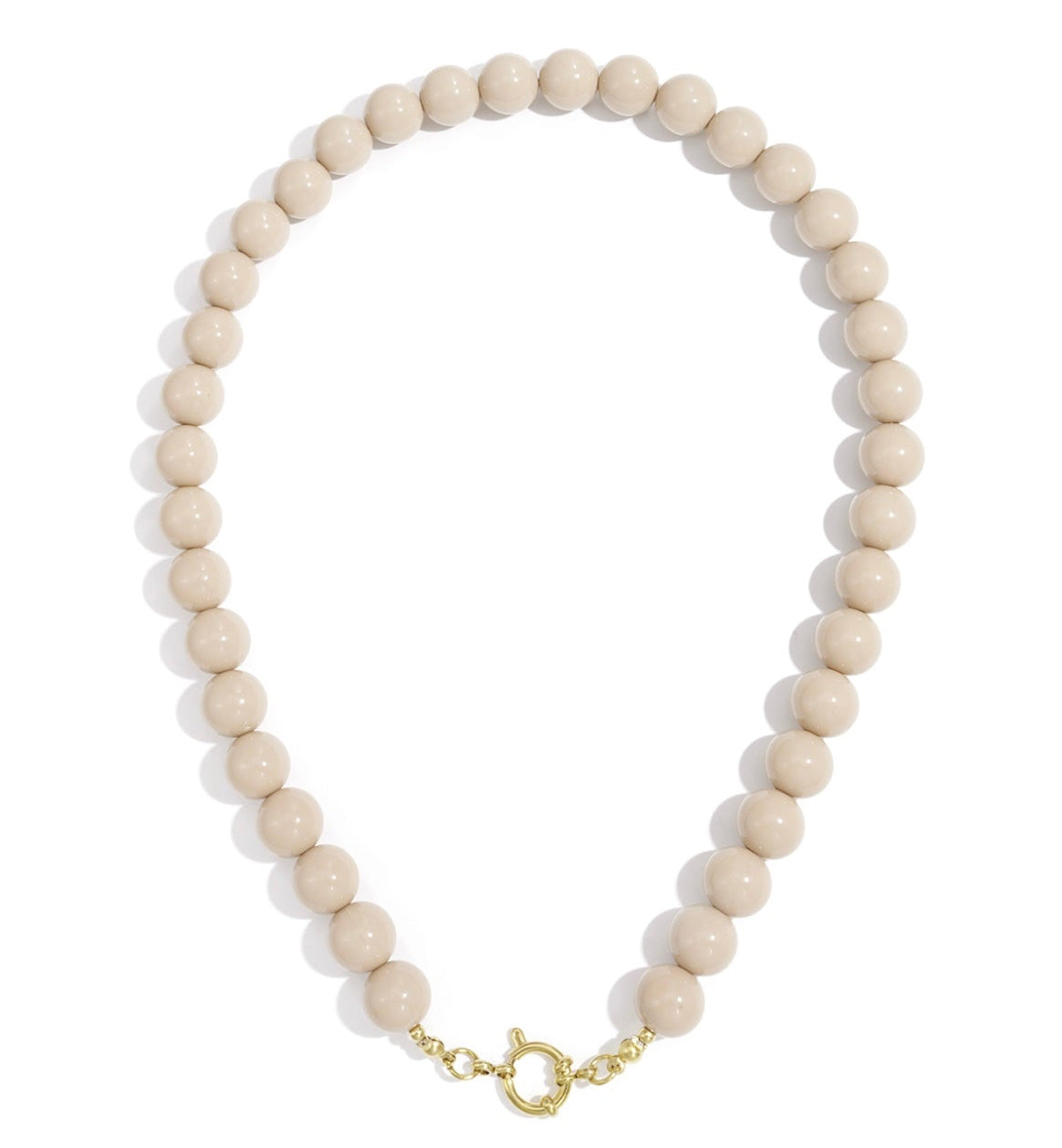 Gekleurde Kralenketting 12mm in de kleur taupe met boeisluiting voor bedels