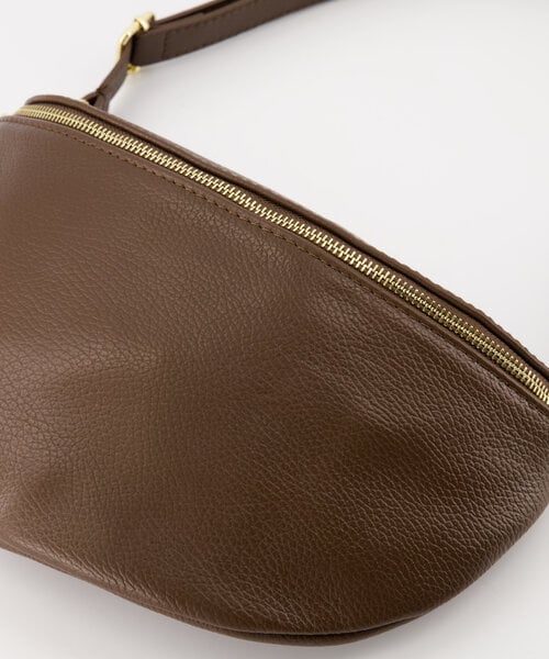 De tas kan als crossbody tas gedragen worden, maar ook als heuptas. En is verkrijgbaar in verschillende kleuren: Donkerbruin, Zwart.