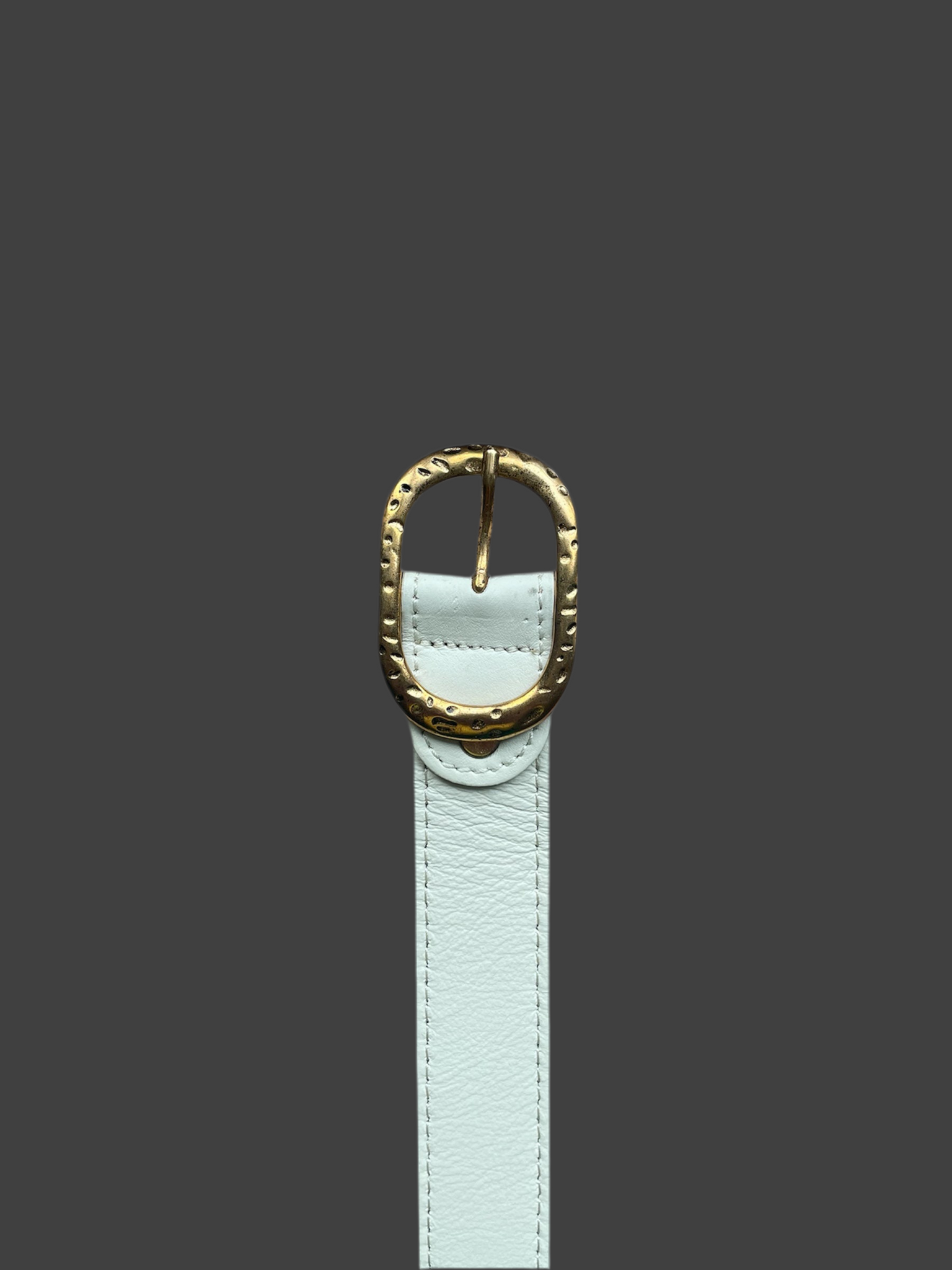 Riem Stien is een mooie basis riem, vervaardigd van hoogwaardig leer met goudkleurige bewerkte gesp. De riem is eventueel gemakkelijk in te korten door middel van een schroef kop.