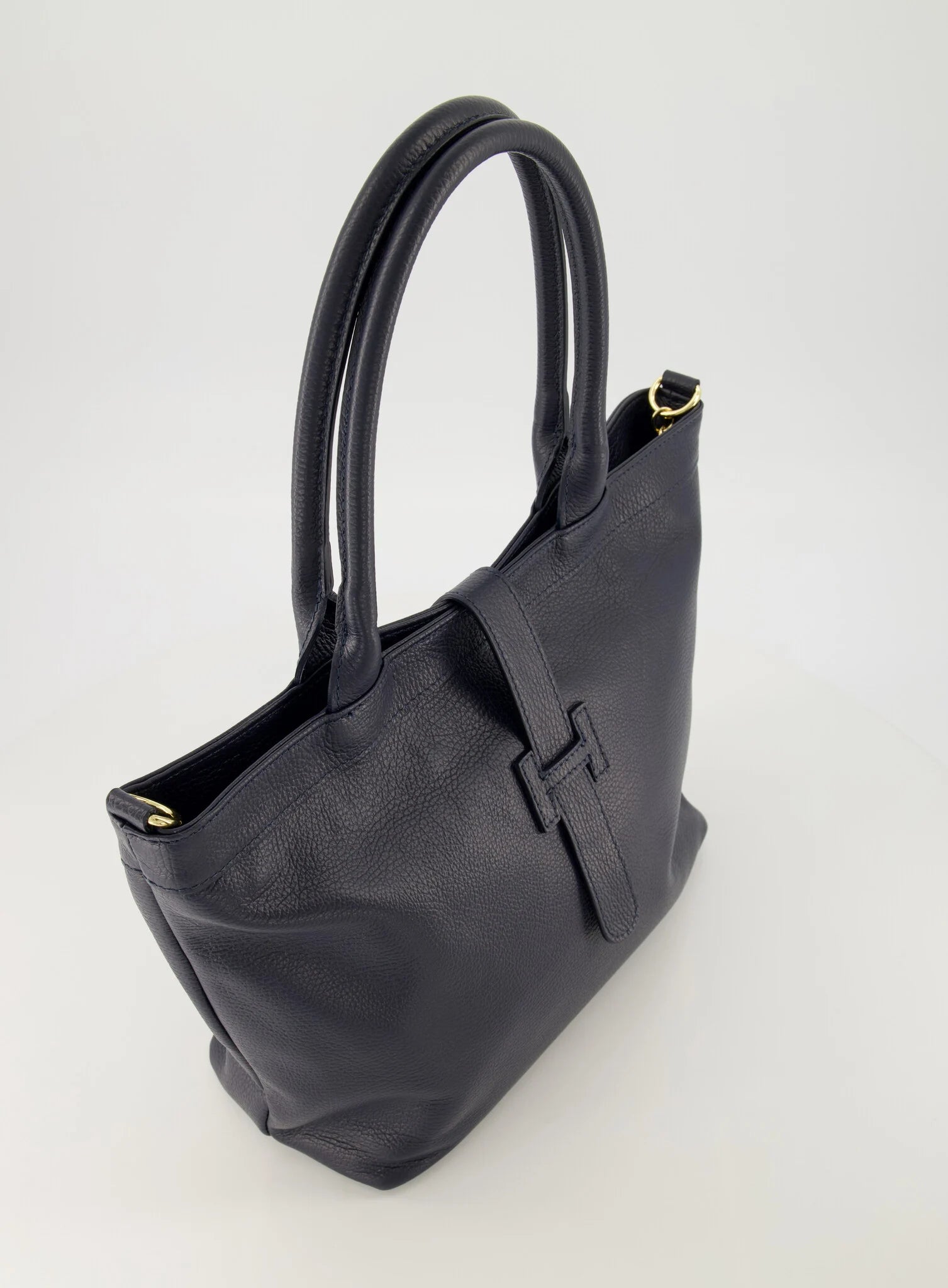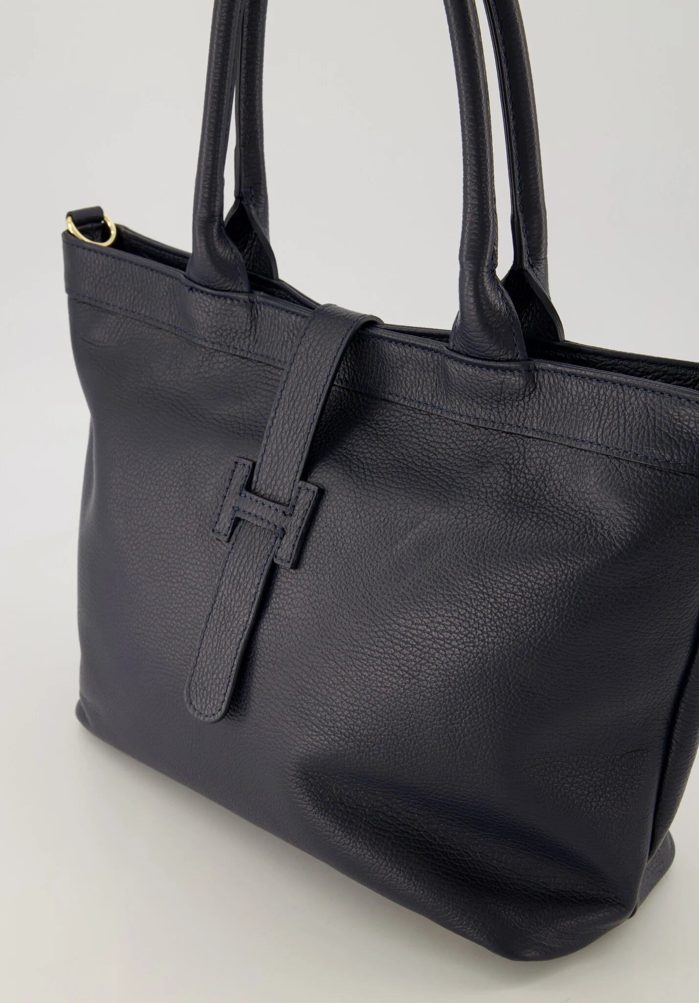 Blauwe Tas Helia is een stijlvolle lederen handtas met afneembaar hengsel, waardoor de tas ook als crossbody gedragen kan worden. De tas heeft als mooi detail, dat deze gesloten wordt met een lus door het H-teken. Tas Helia is verkrijgbaar in verschillende kleuren: Zwart, Blauw.